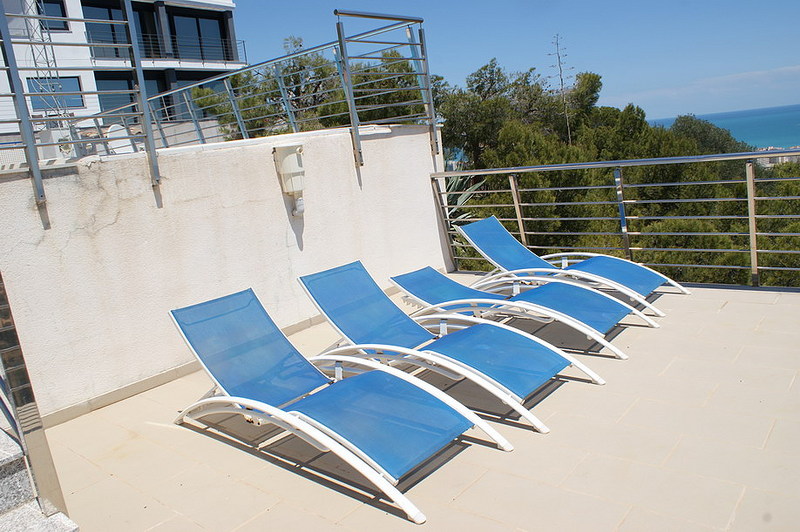 Appartement en terrasse climatisé, en zone résidentielle, avec piscine, vues privilégiées sur la mer et le château, 1 chambre double + canapé-lit (4 PAX), grandes terrasses, jardin privé, parking. Idéal pour profiter de vacances dans une ambience tranquille.